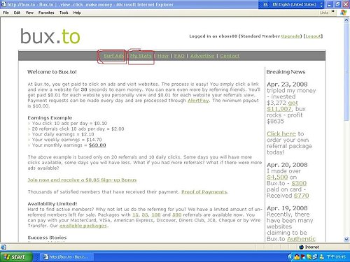 * 查看各人帳戶 my stats *your statistics 是你點多少廣告 *your referral statistics 是你推薦多少人 *additional credit/debit 是你有填推薦人 heberick 有推薦人送0.09美元 *balance information 是你賺多少