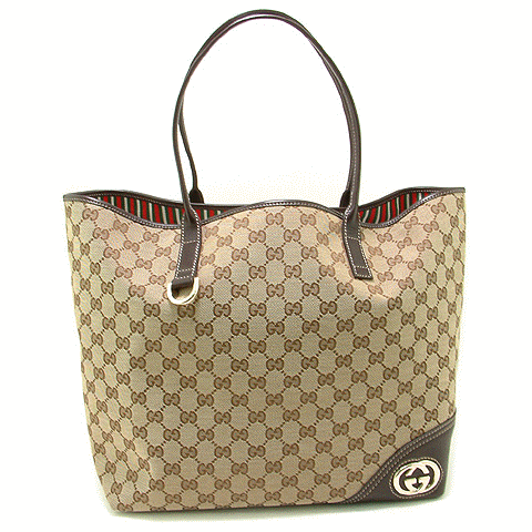 ggucci 咖啡色雙g金屬標牌梯形購物包(大)h