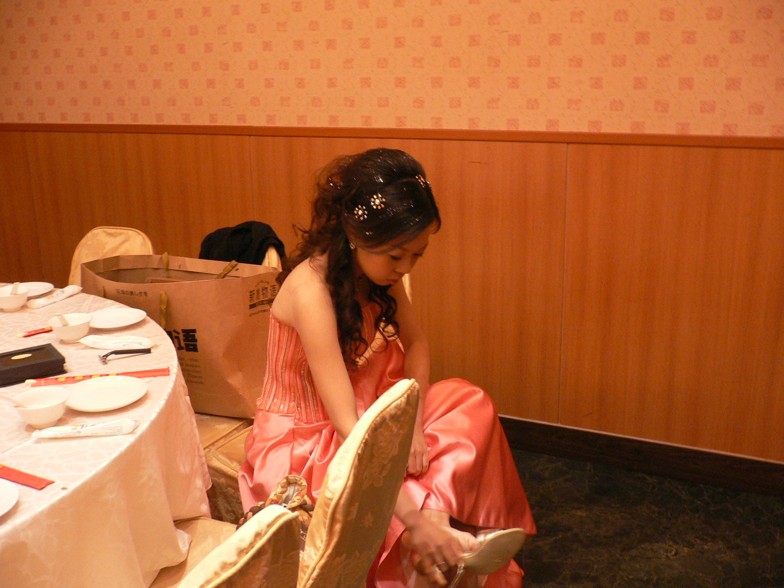 新娘在穿鞋子