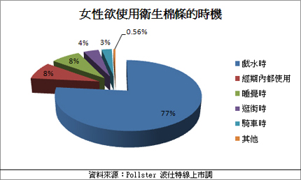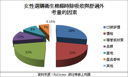 女孩子每個月面臨一次生理期,女性衛生用品從早期的長條型衛生棉發展到現在的蝶翼設計,衛生用品時常推陳出新,於是「衛生棉條」也就應運而生。這項女性用品可以讓女性在月經來訪時,不會受到服裝或動作的限制,運動休閒活動或旅行都可以輕鬆應對,不用顧慮經血外漏或要記得更換衛生棉的時間。因此,波仕特線上市調網(http://www.pollster.com.tw)針對考慮使用衛生棉條的女性進行網路民調,了解網友想要使用棉條的時間點及選購時的依據等等,得到二千多份的有效問卷調查。