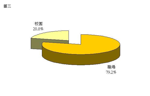 43%的受訪者表示曾有被性騷擾的經驗,另外則有57%的受訪者沒有過性騷擾經驗(圖一)。當波仕特對性別差異做分析時,發現在有過被性騷擾經驗者中,女生被性騷擾者高達77.9%、男生則有22.1%。(圖二)另外,進一步再看被性騷擾過的女生中,近八成性騷擾發生的機會點是在工作職場上,二成發生於校園環境中(圖三)。