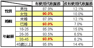 針對有使用超商的款項代收服務的受訪者進行分析,發現以下特點: