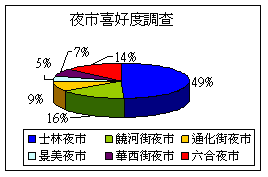 結果發現,49%的受訪中選擇士林夜市,第二、三名別為饒河街夜市(16%)與六合夜市(14%)。