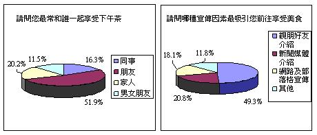 網路及部落格宣傳(18.1%)也逐漸提升,顯示網路的應用與資訊,在21-45歲受訪者中已經普及。網路的搜尋功能、部落格的推薦、消費者拍照放置網站免費的宣傳,都是讓很多下午茶能免費達到曝光且宣傳的因素。